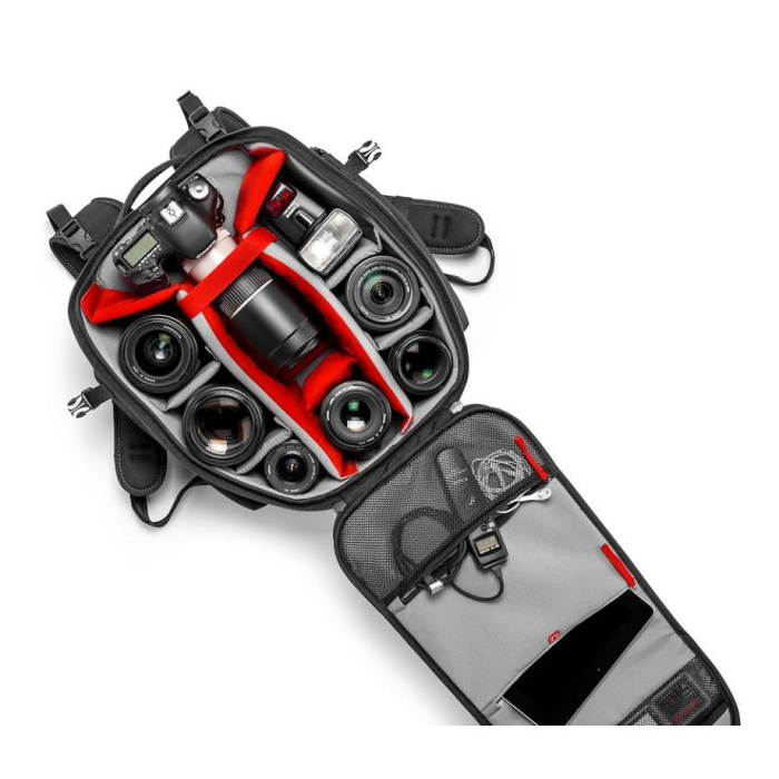 Manfrotto Backpack 20 cho phép bạn mang theo toàn bộ setup với bạn, đựng vừa máy ảnh DSLR và những phụ kiện cần thiết gồm một ống kính 70-200/2.8, một thân máy phụ, 4 ống kính phụ, flash, tripod và các phụ kiện khác. Ba lô nổi bật với khoang chứa và lối mở rộng khuếch đại tầm quan sát và dễ dàng cho bạn tiếp cận các thiết bị đựng trong ba lô. Một ngăn bổ sung nhỏ cho phép đựng laptop 13 inch. Ba lô này trang bị hệ thống bảo vệ máy ảnh của Manfrotto (CPS) đảm bảo giữ cho thiết bị của bạn an toàn. Thiết kế tiên tiến cố định các thiết bị tại chỗ, được lót đệm mềm mại và an toàn trong qua trình bạn di chuyển. Vỏ ngoài được làm từ cấu trúc đa lớp cực bền góp phần tăng sự bền bỉ, cứng cáp. Ba lô có đi kèm áo mưa phù hợp di chuyển trong thời tiết bất lợi.
