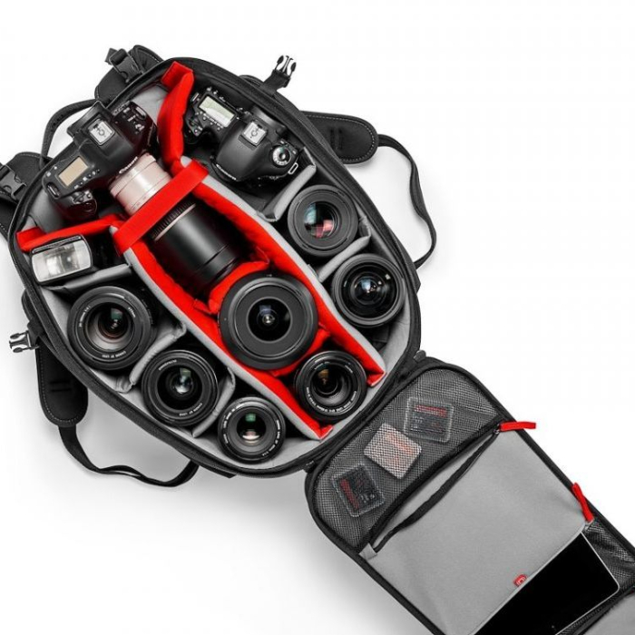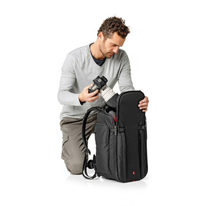 Manfrotto Backpack 50 cho phép bạn mang theo toàn bộ setup với bạn, đựng vừa máy ảnh DSLR và những phụ kiện cần thiết gồm một ống kính 70-200/2.8, một thân máy phụ, 6 ống kính phụ, flash, tripod và các phụ kiện khác. Ba lô nổi bật với khoang chứa và lối mở rộng khuếch đại tầm quan sát và dễ dàng cho bạn tiếp cận các thiết bị đựng trong ba lô. Một ngăn bổ sung nhỏ cho phép đựng laptop 15 inch. Ba lô này trang bị hệ thống bảo vệ máy ảnh của Manfrotto (CPS) đảm bảo giữ cho thiết bị của bạn an toàn. Thiết kế tiên tiến cố định các thiết bị tại chỗ, được lót đệm mềm mại và an toàn trong qua trình bạn di chuyển. Vỏ ngoài được làm từ cấu trúc đa lớp cực bền góp phần tăng sự bền bỉ, cứng cáp. Ba lô có đi kèm áo mưa phù hợp di chuyển trong thời tiết bất lợi.